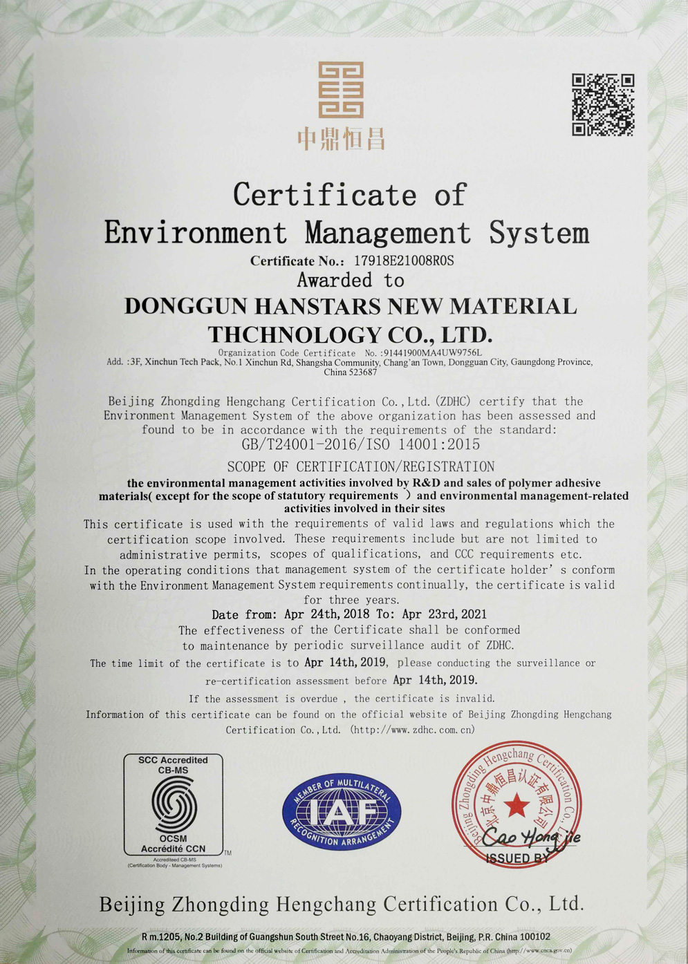 公司通過ISO9001認(rèn)證和ISO14001認(rèn)證
