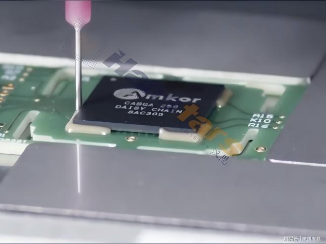 產(chǎn)品簡(jiǎn)介:漢思芯片四角圍堰膠是一款單組份環(huán)氧樹(shù)脂膠粘劑,具備中溫快速固化特性。該產(chǎn)品具有極佳的粘著性,耐熱性、耐水汽性能優(yōu)異,可靠性高,主要用于芯片四角固定,廣泛應(yīng)用于BGA、IC存儲(chǔ)卡、陶瓷封裝及柔性電路倒裝芯片的粘結(jié)與包封。適用于高可靠性電子封裝領(lǐng)域。